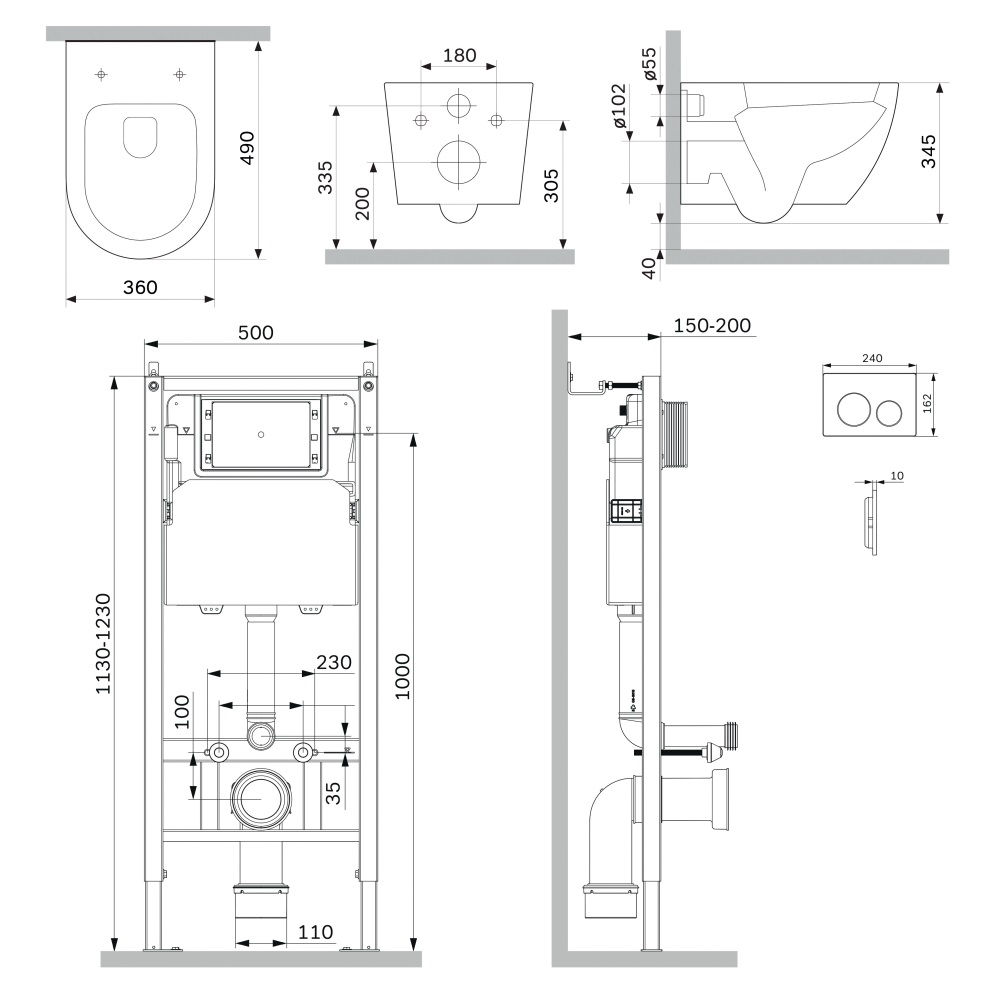 Состав поставки: система инсталляции, унитаз подвесной, крышка-сиденье, кнопка смыва, комплект шумоизоляции, монтажный комплект.