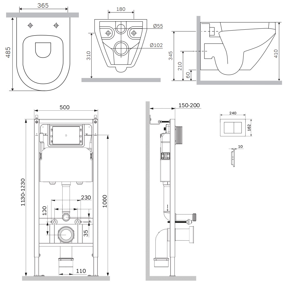 Состав поставки: система инсталляции, унитаз подвесной, крышка-сиденье, кнопка смыва, комплект шумоизоляции, монтажный комплект.