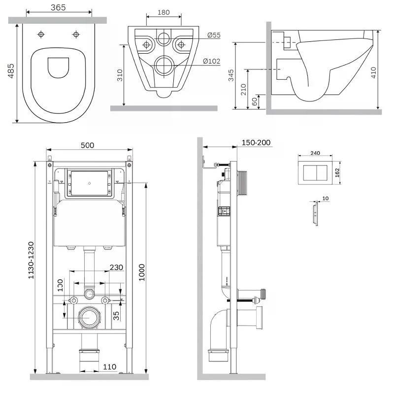 Рама выдерживает нагрузку до 500 кг. Внутреннее сечение профиля 3 мм обеспечивает надежность и долговечность конструкции. Увеличенная толщина профиля, армированный шланг подачи воды, двойная прокладки слива и подачи воды. Подключение воды сзади сверху. В комплекте механическая двухрежимная клавиша из ABS пластика в цвете глянцевый хром.