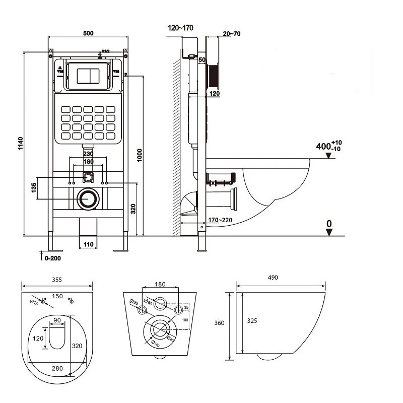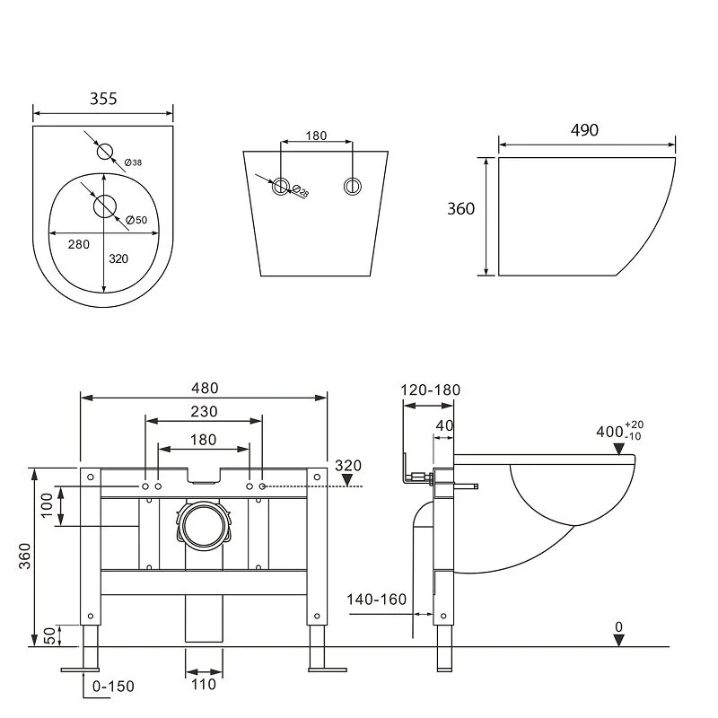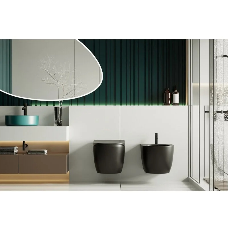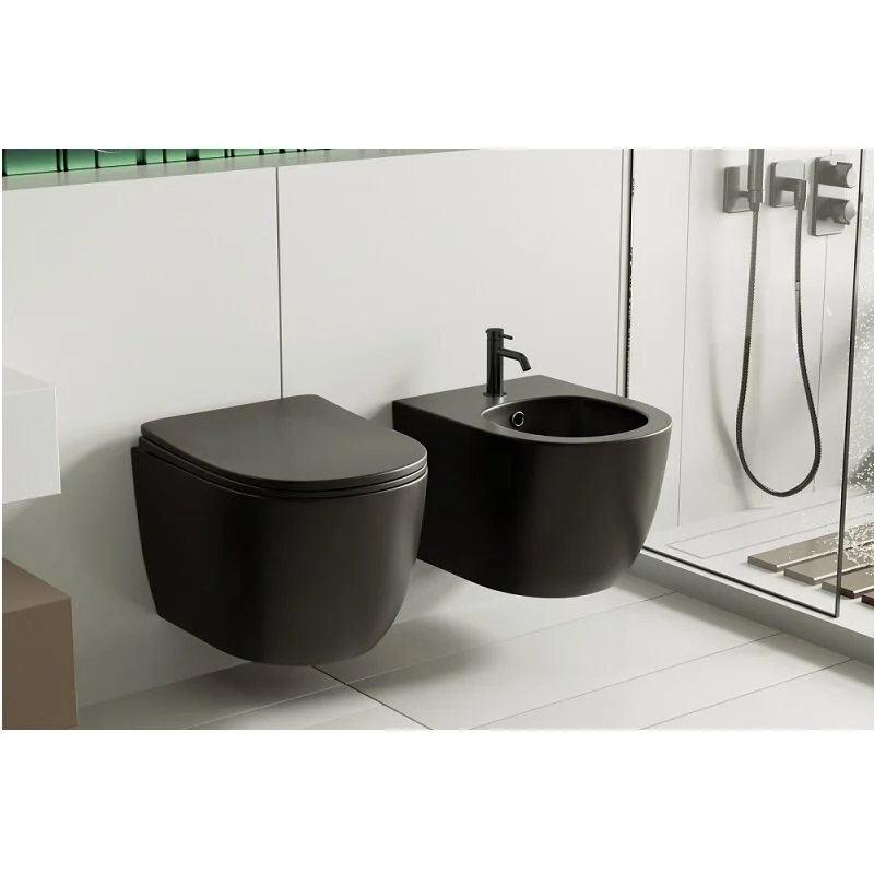 Комплект инсталляция с унитазом и биде Abber с клавишей черная матовый (AC1100MB-AC0105-AC0120MB-AC1150MB-AC0101P)