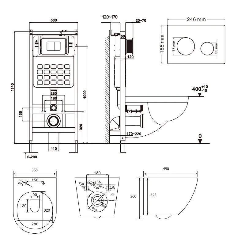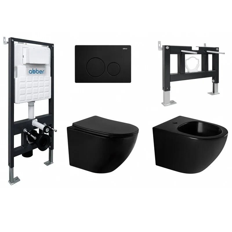 Комплект инсталляция с унитазом и биде Abber с клавишей черная матовый (AC1100MB-AC0105-AC0121MB-AC1150MB-AC0101P)
