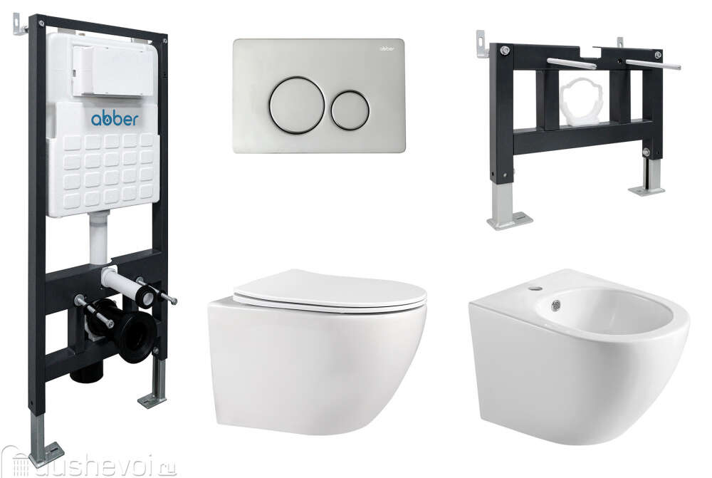 Комплект инсталляция с унитазом и биде Abber с клавишей хром (AC1100-AC0105-AC0121-AC1150-AC0101P)
