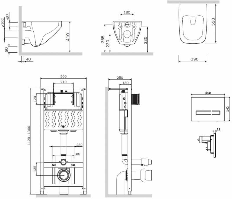 Полностью готовый к установке комплект: система инсталляции с клавишей, подвесной унитаз сиденьем. Неразборная рама из стального профиля выдерживает нагрузку до 400 кг. Полностью изолированный бачок с качественной двухрежимной смывной арматурой - комфортное использование благодаря низкмоу уровню шума - менее 20 Дб. Укомплектован сенсорной клавишей в черном цвете. В комплекте все необходимые патрубки и крепления, а также прокладка между унитазом и стеной - звукоизоляция.