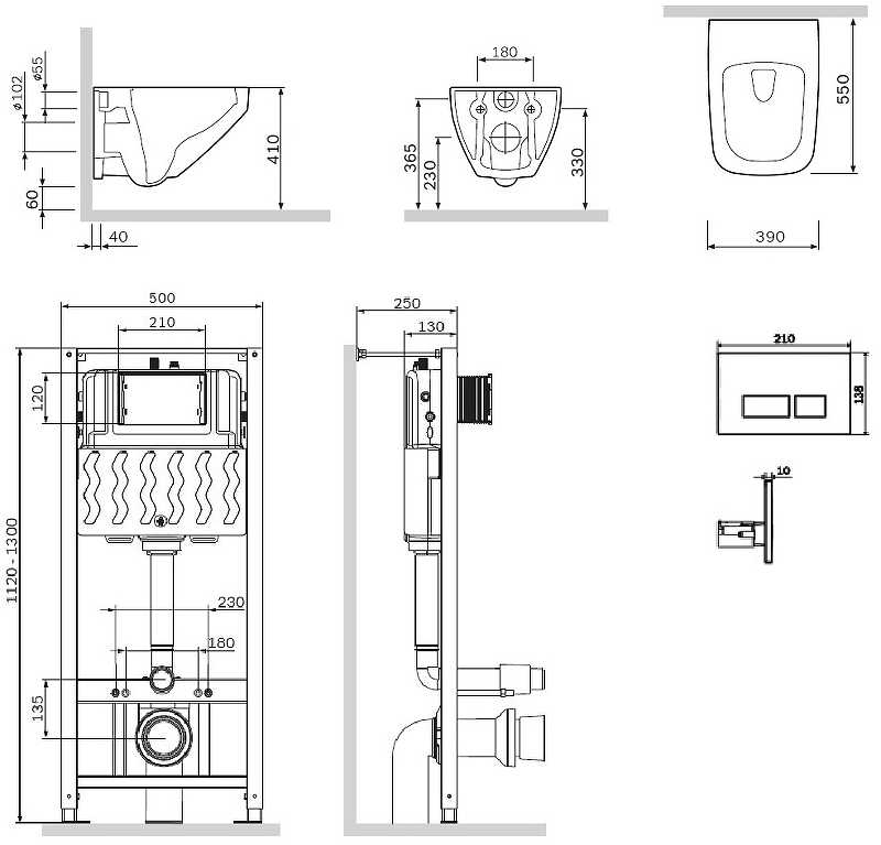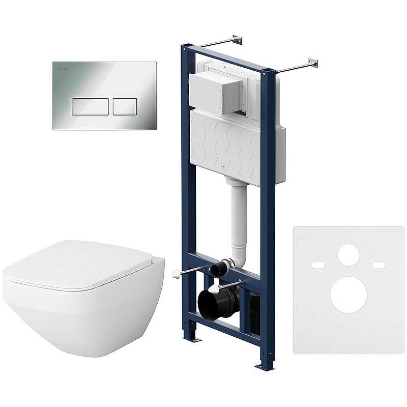 Полностью готовый к установке комплект: система инсталляции с клавишей, подвесной унитаз сиденьем. Неразборная рама из стального профиля выдерживает нагрузку до 400 кг. Полностью изолированный бачок с качественной двухрежимной смывной арматурой - комфортное использование благодаря низкмоу уровню шума - менее 20 Дб. Укомплектован пневматической клавишей в цвете глянцевый хром. В комплекте все необходимые патрубки и крепления, а также прокладка между унитазом и стеной - звукоизоляция.