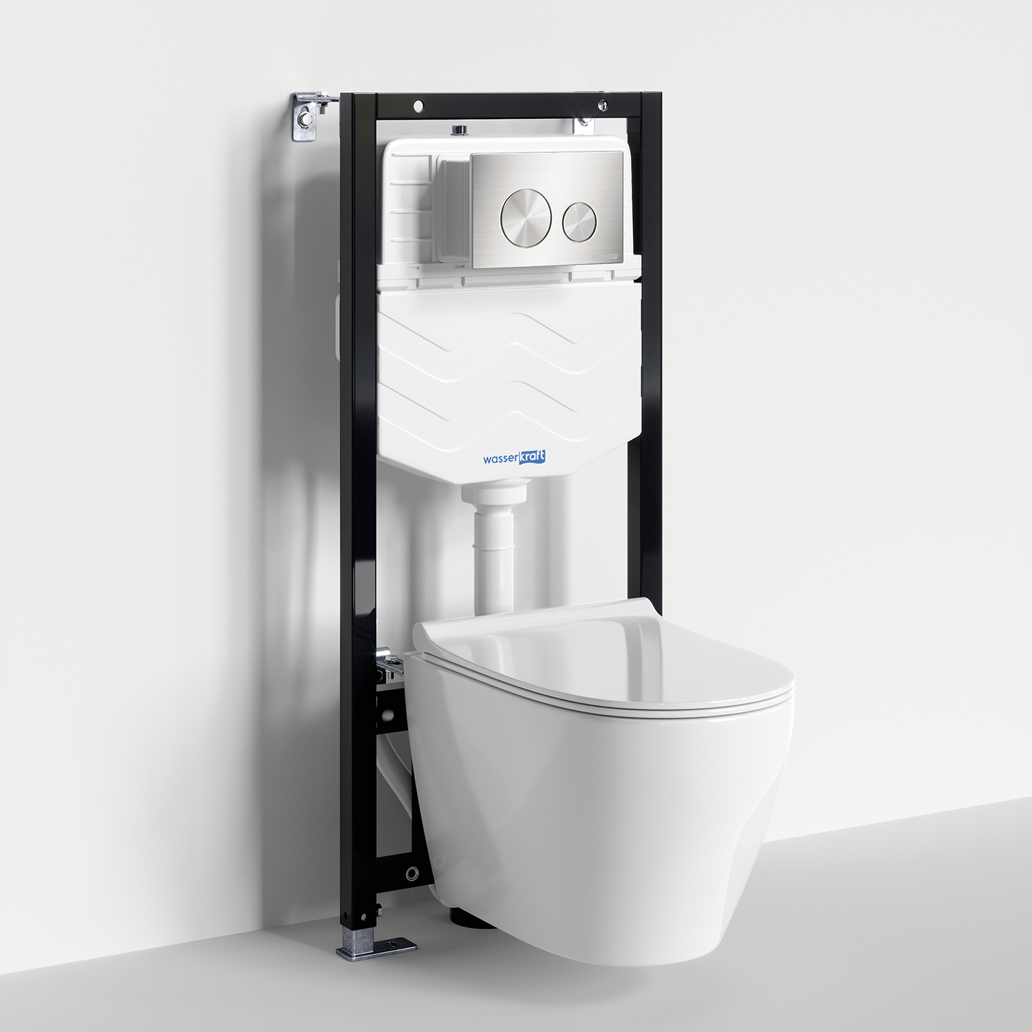 Комплект инсталляция с унитазом WasserKRAFT Alle с клавишей смыва никель c сиденьем дюропласт (10TLT.010.ME.BN02.H002)