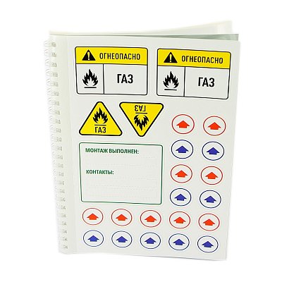 Предназначены для маркировочного бейджа. Книжка содержит 64 основных наклейки (60 на 45 мм), которые клеются на табличку для маркировки труб артикул 869S6344, 54 наклейки-вставки (23 на 7 мм) и 81 дополнительная наклейка.