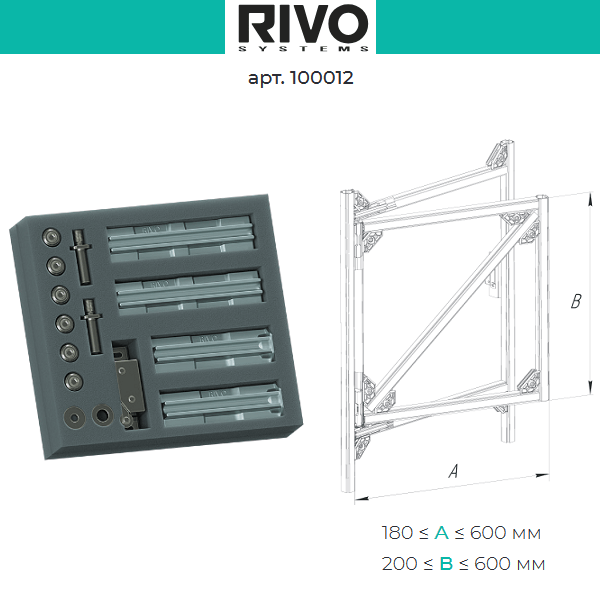 Комплект скрытых монтажных петель RIVO Fix арт.100012 предназначен для изготовления и сборки на месте нестандартных сантехнических люков и дверей разных размеров в каркасной профильной системе РИВО.