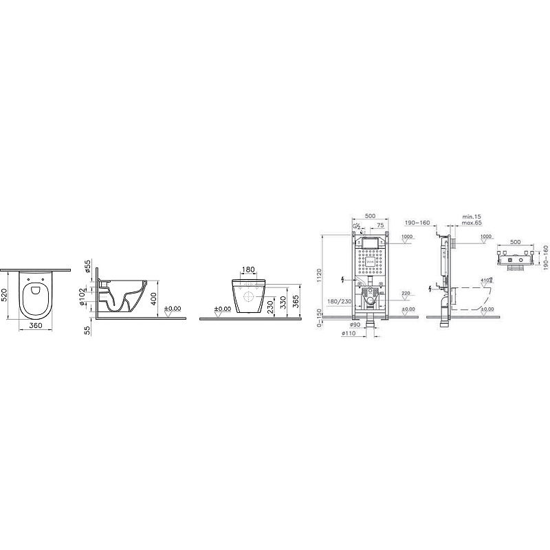 Комплект инсталляция Vitra c унитазом S50, с сидением, клавишей (9003B003-7201) хром