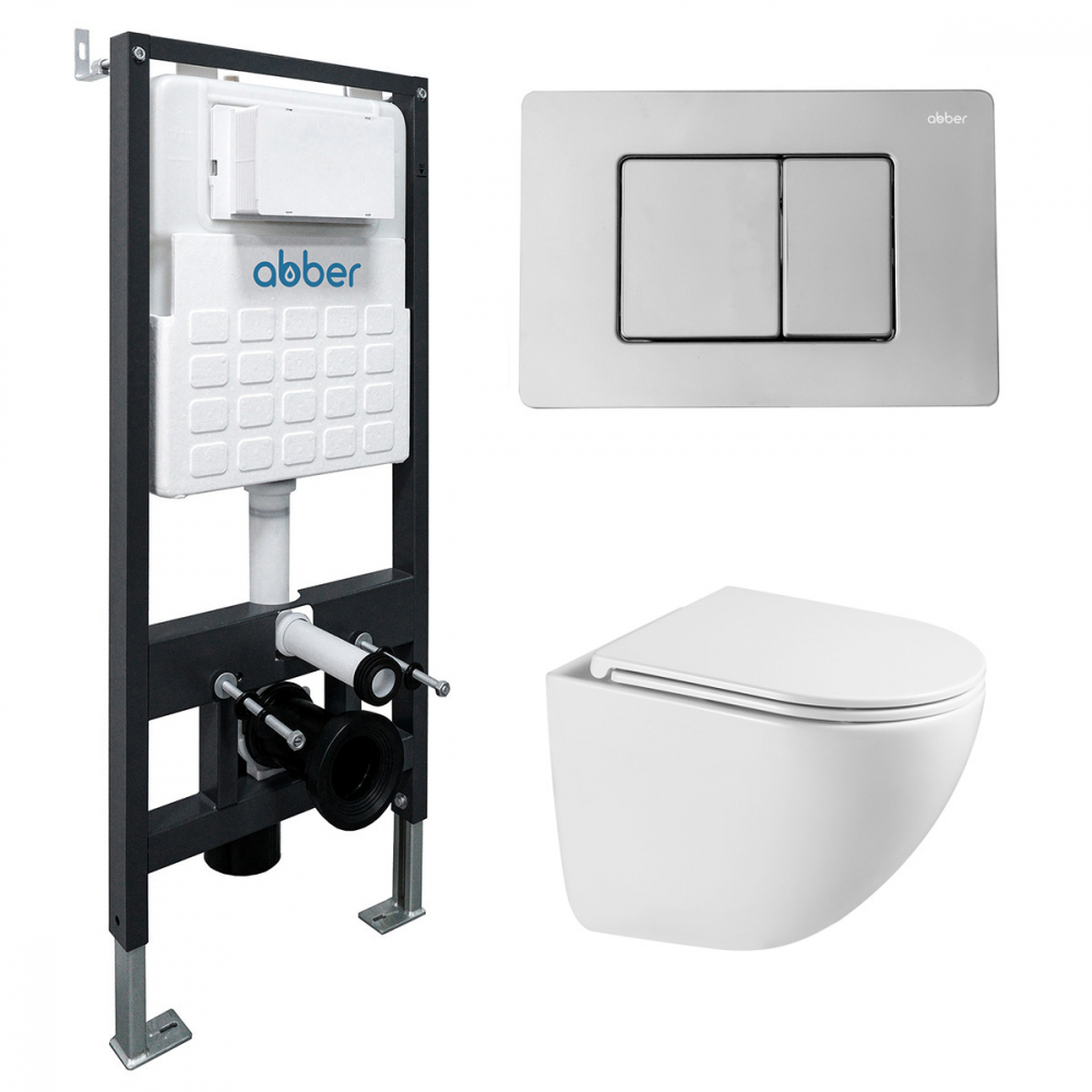 Комплект подвесной унитаз Abber Bequem AC1131TC белый, с закрытым дном с инсталляцией AC0105 и кнопкой AC0120 хром глянцевый (AC1131TC-AC0105-AC0120)