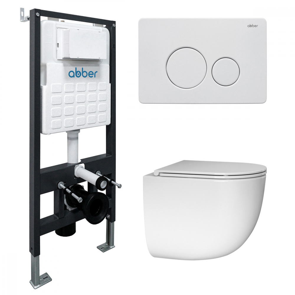 Комплект подвесной унитаз Abber Bequem AC1132TC белый, с закрытым дном с инсталляцией AC0105 и кнопкой AC0121MW белая матовая (AC1132TC-AC0105-AC0121M