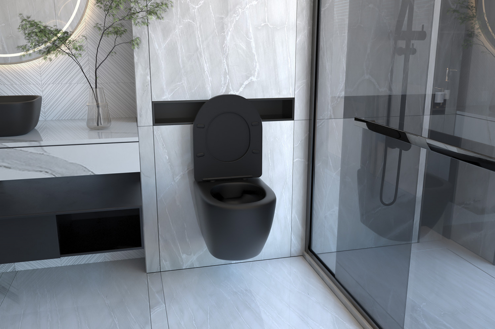 Комплект инсталляция с унитазом Abber Bequem черный матовый с инсталляцией AC0105 и кнопкой AC0121MB черная матовая (AC1100MB-AC0105-AC0121MB)