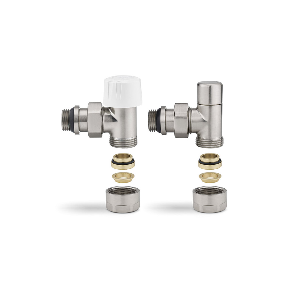 Комплект радиаторных клапанов угловой 1/2"х3/4"(18)ЕК Varmega №1 (матовый никель) (VMDV10-510415)