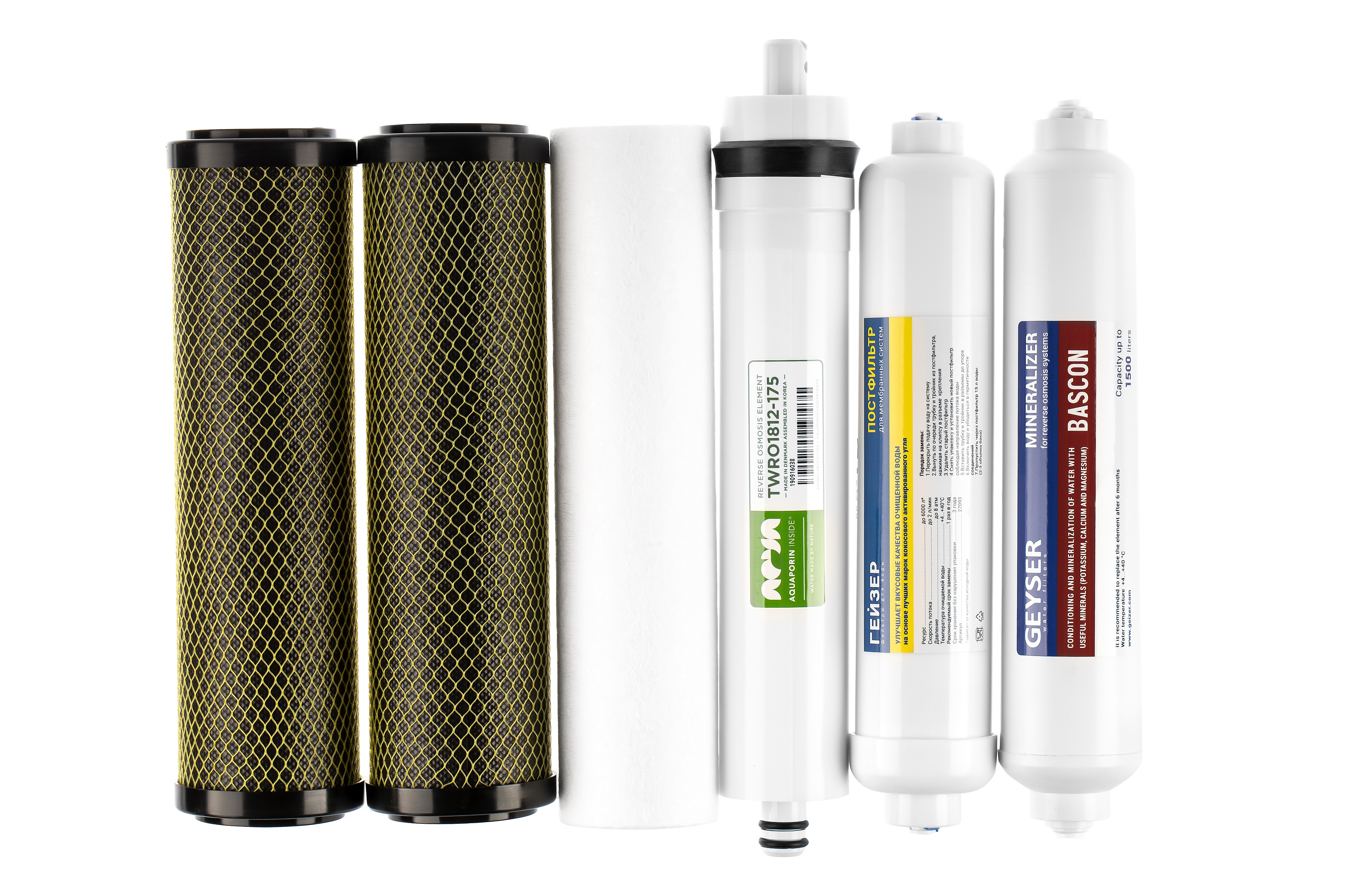 • Угольный постфильтр - картридж сорбционного типа с наполнением из кокосового угля, эффективно устраняет неприятные привкусы и запахи, появление которых возможно из-за застойных явлений в накопительной емкости и присутствия в воде растворенных газов. Ресурс – до 6000 л*.