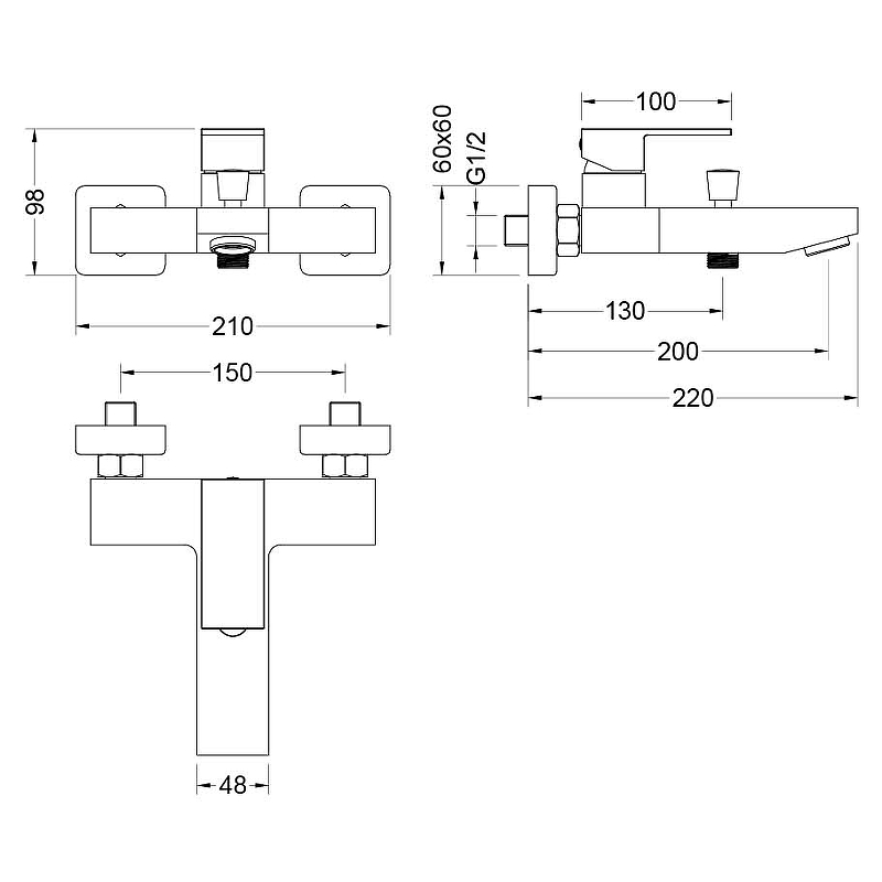 Комплект смесителей Aquatek Либра Set 3 в 1 AQ1610MB+AQ1640MB+AQ2019MB (AQ1630MB)