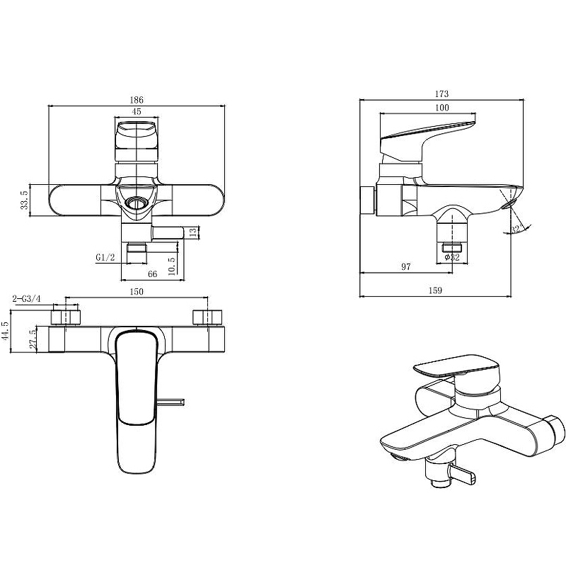 Комплект смесителей Aquatek Вега Set 3 в 1 AQ1010MB+AQ1040MB+AQ2011MB (AQ1030MB)