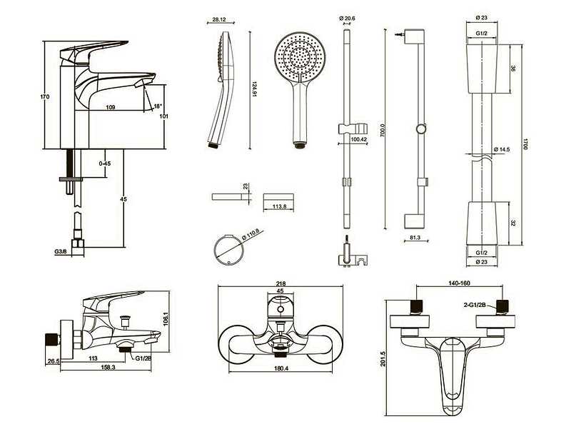 - Душевая штанга высотой 70 см. Душевой шланг длиной 170 см.