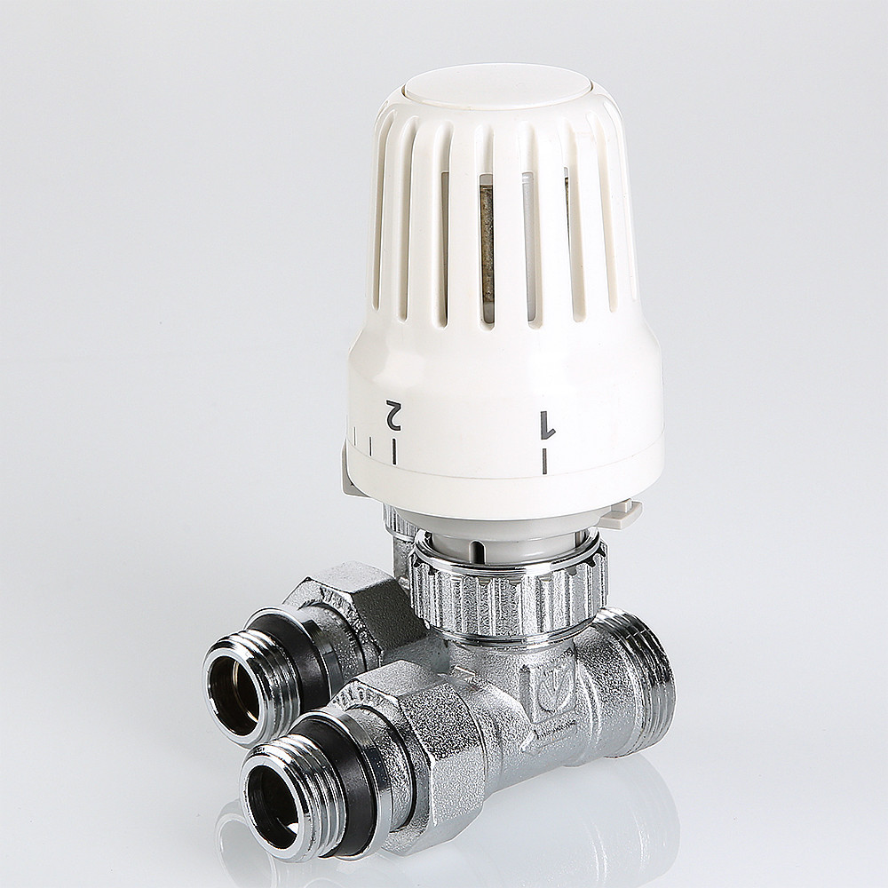 Комплект терморегулирующего оборудования VT.046 включает в себя прямые термостатический и запорно-регулировочный (настроечный) радиаторные клапаны, а также термостатическую головку.