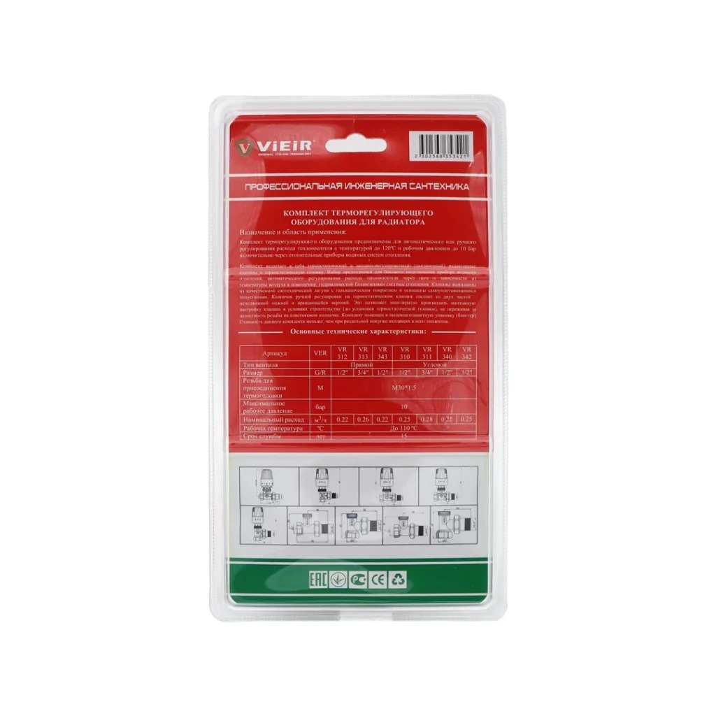 Комплект термостатический угловой 1/2" Vieir VR (2 в 1 - регул.клап+термоголовка) (VR342)