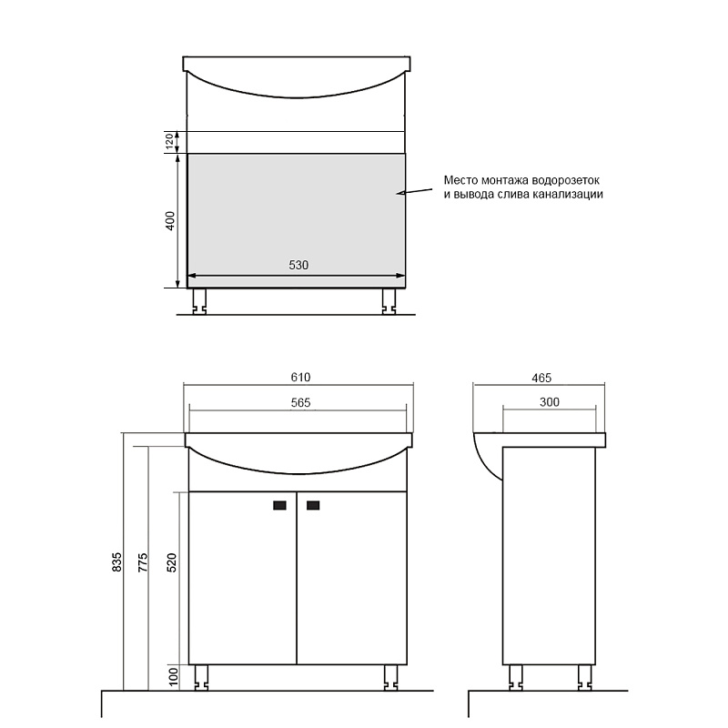Комплект Тумба Loranto Стиль София 63х83,5х46,5 с раковиной Teo 60 (CS00073483)