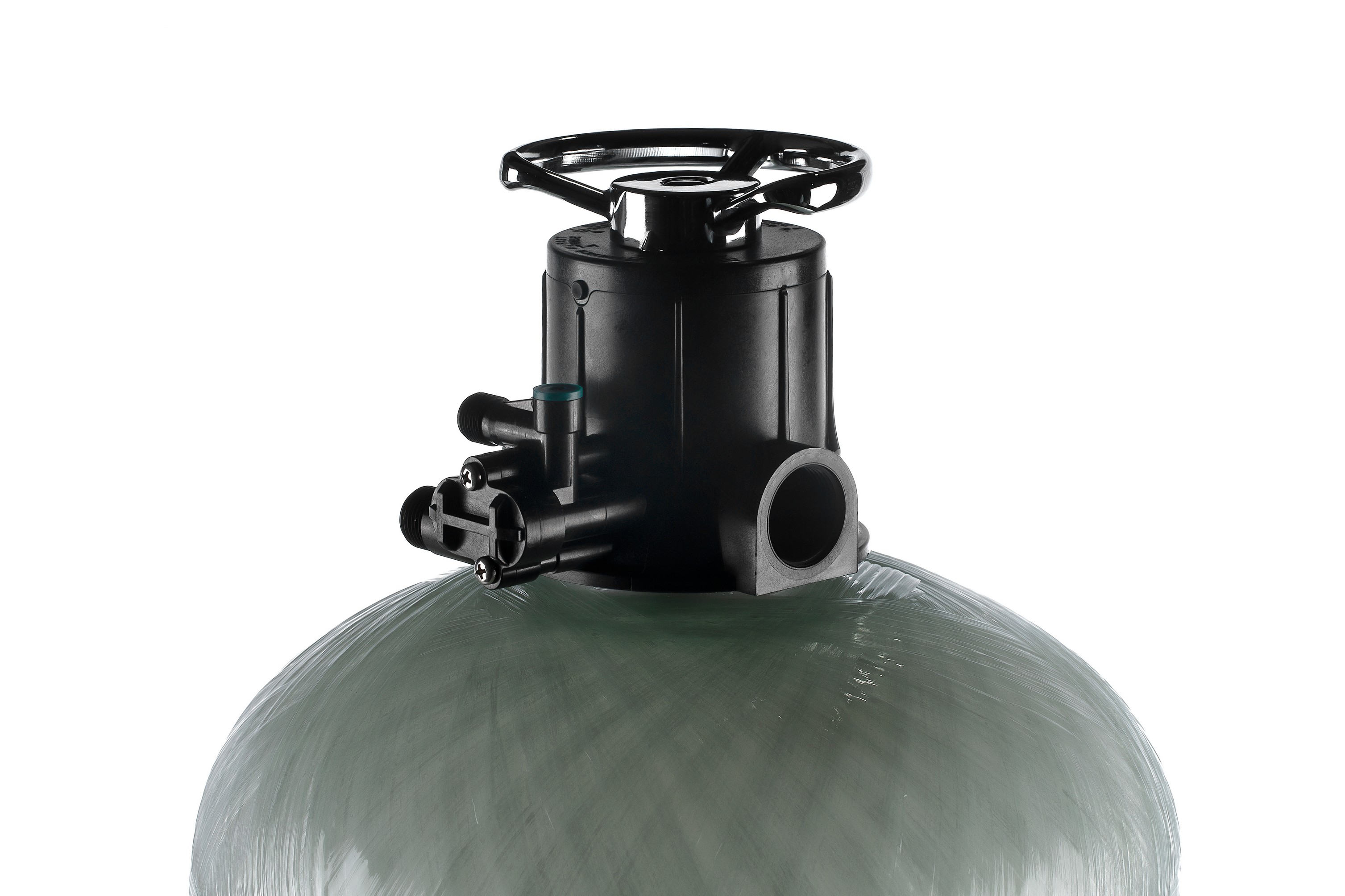 Особенностью данного комплекта является ручной энергонезависимый блок управления с 5 режимами работы (фильтрация, обратная промывка, прямая промывка, солевая промывка, заполнение солевого бака).