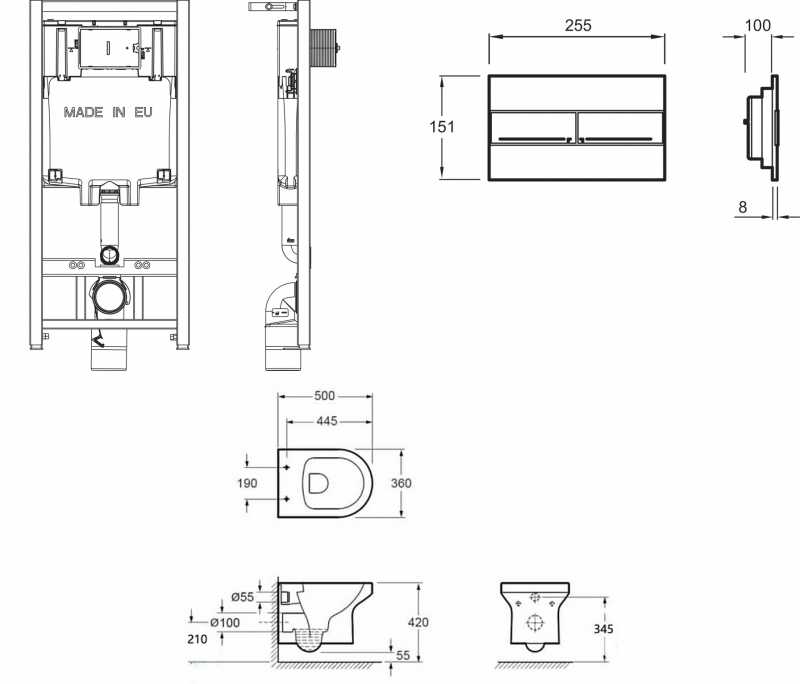 Комплект унитаза с инсталляцией Jacob Delafon Elite E21742RU-00. Безободковая чаша обеспечивает доступ ко всей поверхности и позволяет эффективно справляться с загрязнениями.