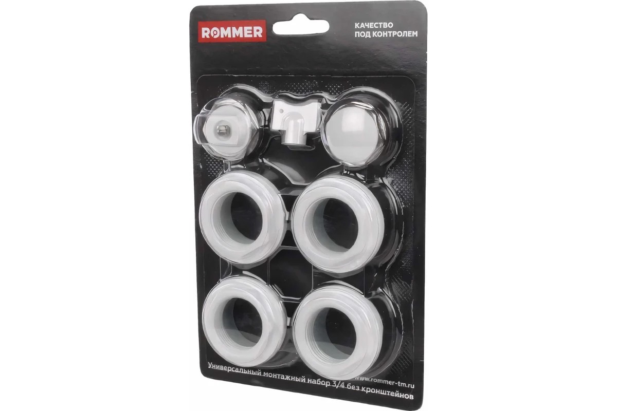 Комплект универсальный для монтажа радиатора Rommer 3/4" 7 в 1 (белый, без кронштейнов) (F011-3/4)