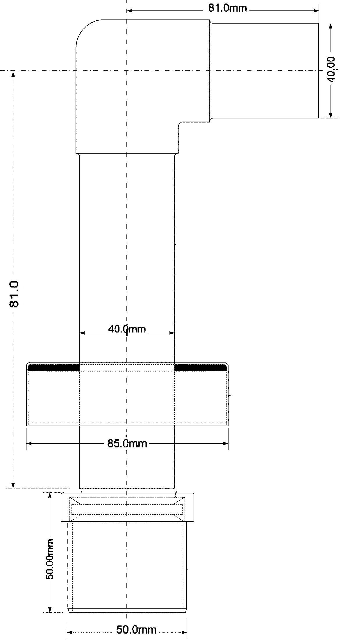 Установочный комплект из латуни: отвод на 90° Дн=40мм, переходная муфта с Ду=40мм на Дн=50мм, отражатель, цвет-хром