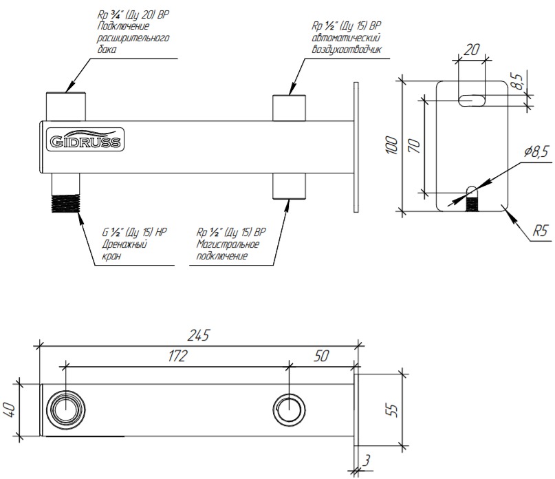 Консоль расширительного бака верхнего расположения Gidruss BKSS-18U.BASIS (нержавеющая сталь AISI 304, объем бака 8-18 л) (BK 18U1B 00)