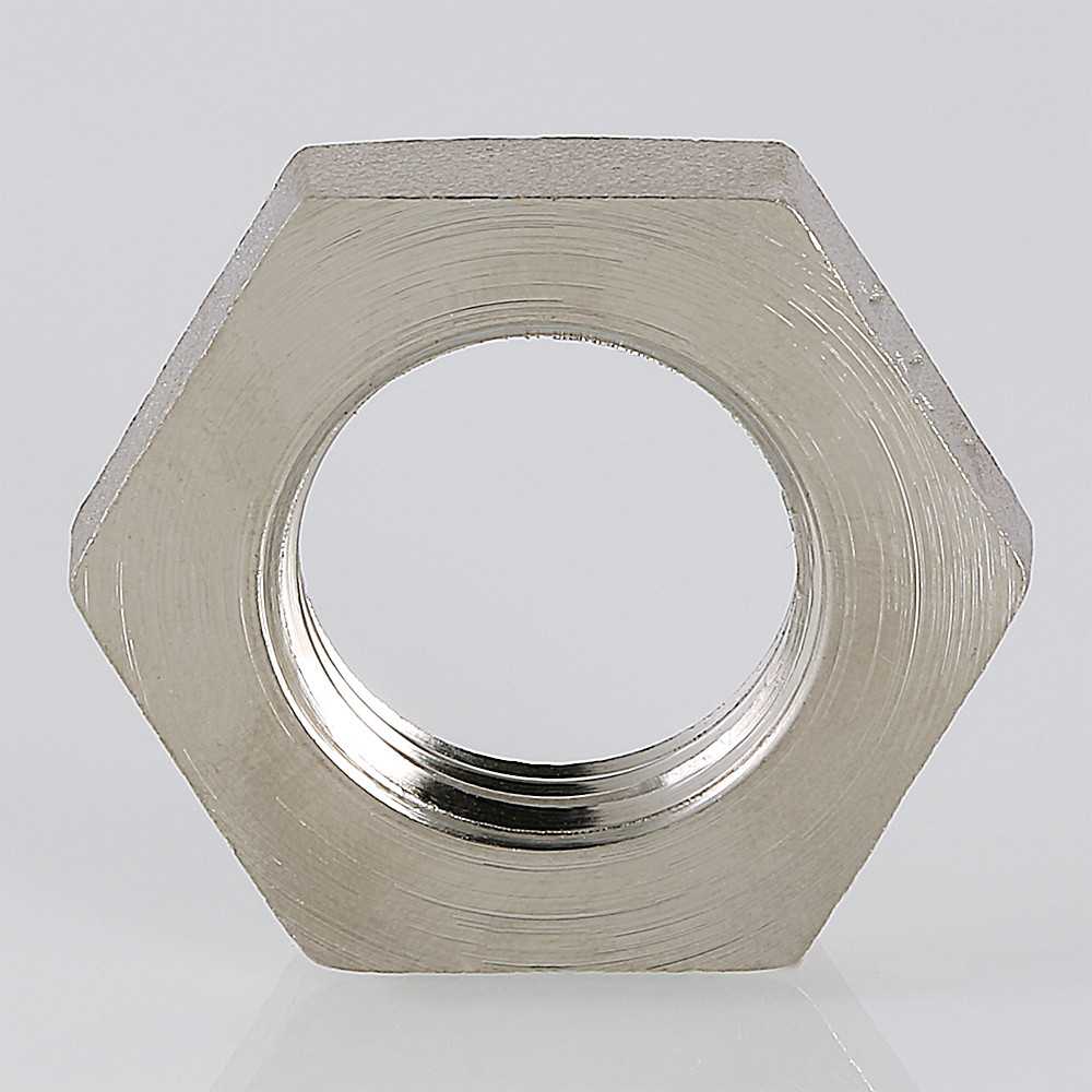 Контргайка является наиболее недорогим, но эффективным вариантом изделий, гаечных замков, предотвращающих раскручивание резьбовых элементов (муфты, сгоны) трубопроводов вследствие вибрации, гидроударов и т.д. Форма, размеры контргайки соответствуют ГОСТу 8968-75. Латунная никелированная контргайка ГОСТ VALTEC имеет широкую рабочую поверхность, которая повышает надежность фиксации соединения (трение между гайкой и фитингом препятствует расконтриванию), помогает повысить его герметичность, скрыть выступающий уплотнитель. Резьба – трубная цилиндрическая, совместимая с наружной конической по ГОСТ 6211.