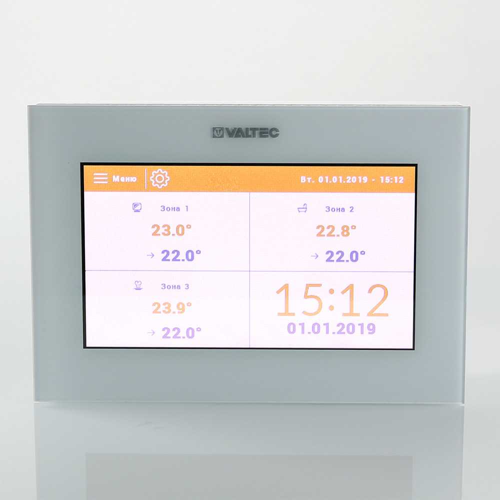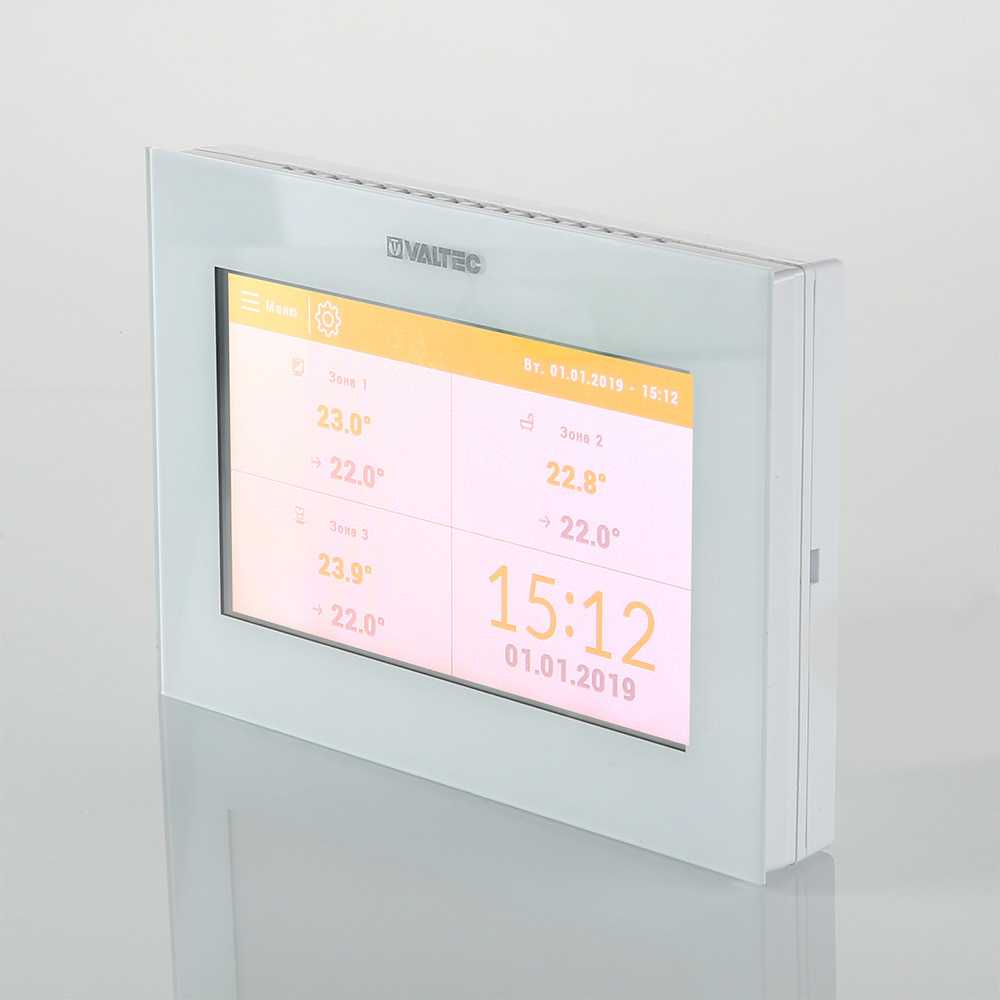 Панель отображает основные функции и настроечные параметры зонального контроллера на сенсорном ЖК-дисплее. Это дает возможность пользователю производить управление климатическими системами здания с одного компактного устройства.