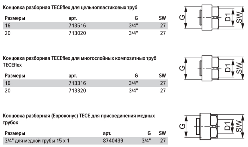 Для подключения многослойных композитных труб TECEflex к Евроконусу 3/4" НР. Предназначена только для монтажа систем отопления.