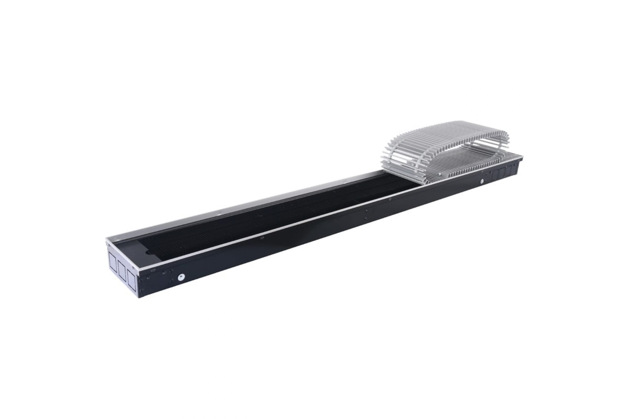 Внутрипольный конвектор алюминиевая решётка имеет небольшие габаритные размеры, идеально подходит для оборудования помещения с узким окном от потолка до пола. Устройство представляет собой отопительный прибор конвективного типа, который работает от водяного теплоносителя. Визуально не занимает свободное пространство жилой комнаты или офисного кабинета, "облегчая" интерьер и сохраняя его эстетику.
