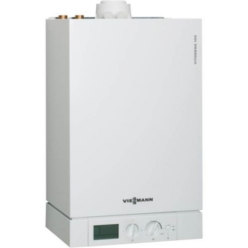 Настенный газовый конденсационный котел, для режима эксплуатации с отбором воздуха для горения извне или из помещения установки, с модулируемой цилиндрической горелкой MatriX и теплообмен¬ником Inox-Radial с встроенным расширительным баком. Для работы на природном газе. Газовый конденсационный настенный котёл Vitodens 100-W, мощностью 5,8-35,0 кВт (при температурном режиме 50°/30°С) и 5,3-32 кВт (при температурном режиме 80°/60°С), оснащен модулируемой горелкой MatriX и теплообменником Inox-Radial, обеспечивает высокий комфорт отопления. Оборудование выполнено в классическом дизайне и имеет компактные габариты. КПД настенного газового котла составляет 97,4%. За счет дополнительного использования скрытой теплоты парообразования в уходящих газах сокращается расход количества потребляемой энергии.