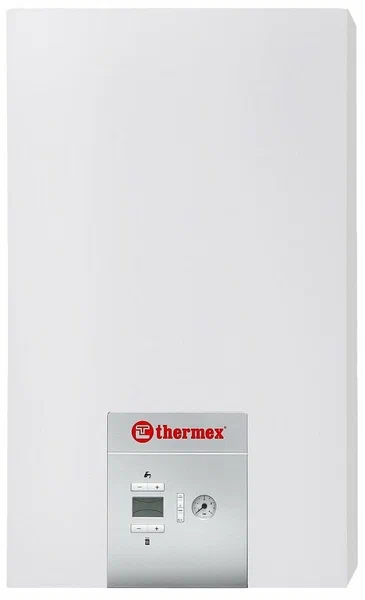 Газовый конвективный настенный котел Thermex (Термекс) EuroElite - это эффективное оборудование промышленного типа, способное обеспечить водяную отопительную систему для площади 400 кв. метров. Агрегат способен работать в режиме ГВС и оснащен электронной системой управления с цифровым дисплеем.