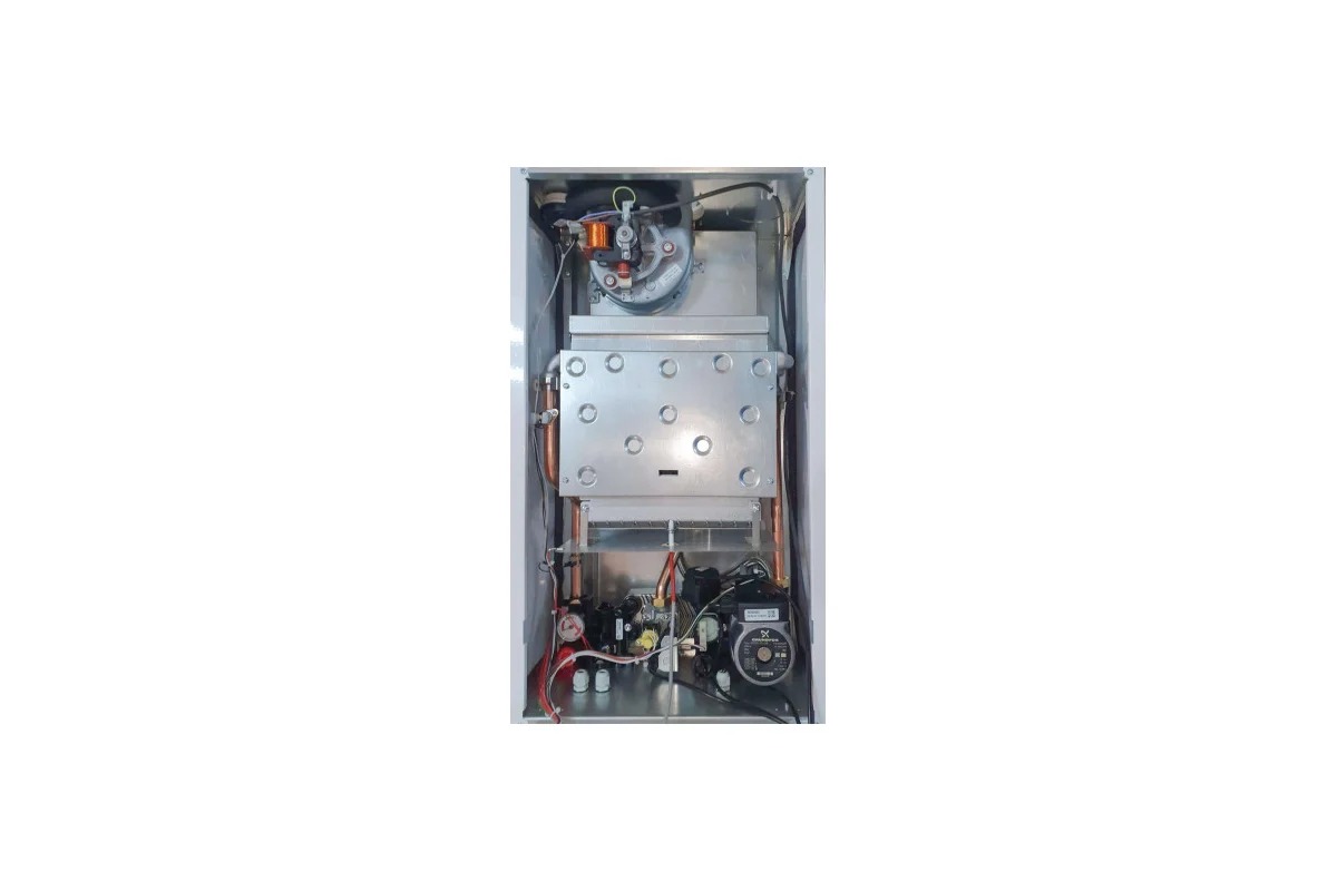 За подогрев отвечает пластинчатый теплообменник, который обеспечивает постоянную температуру подачи горячей воды.