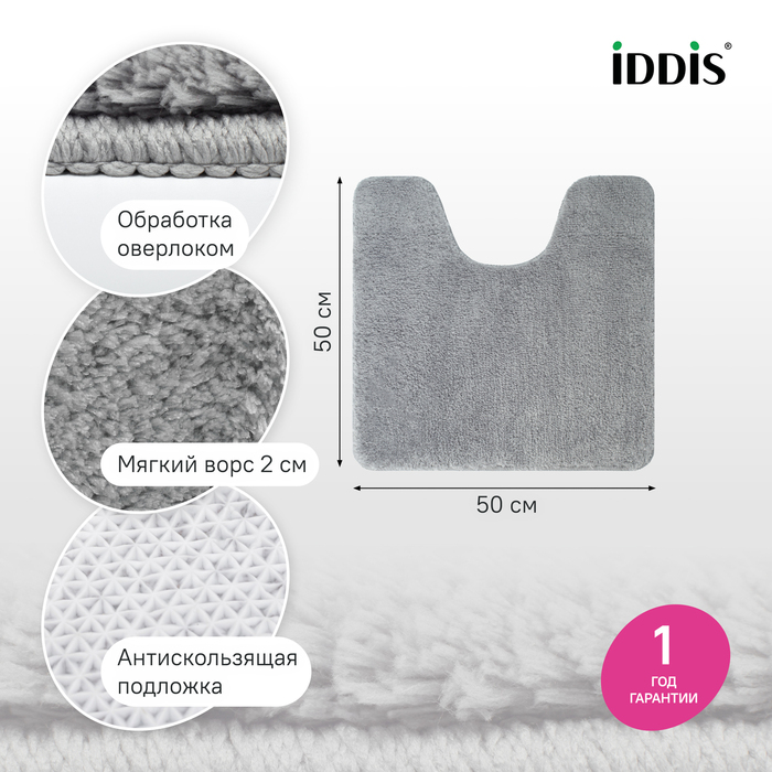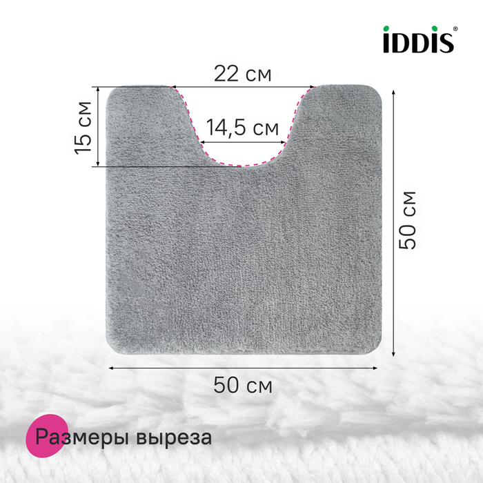 Коврик для ванной комнаты с вырезом 50х50 микрофибра серый Iddis (BTLT02Mi12)