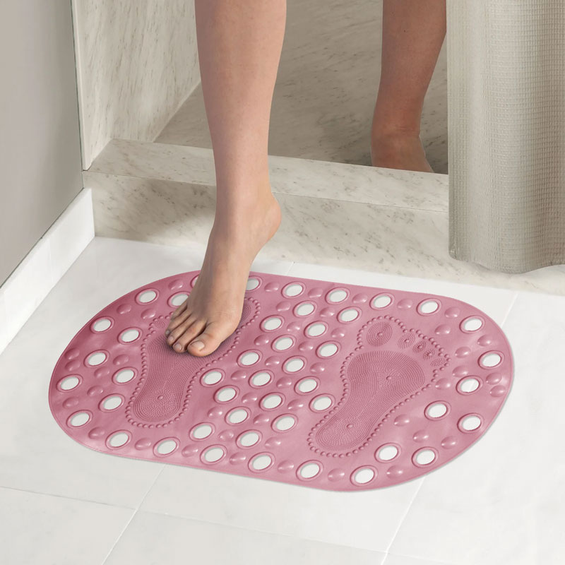 Коврик для ванной Melodia ПВХ Footprints овал массажный 65x34cм розовый (MK003)