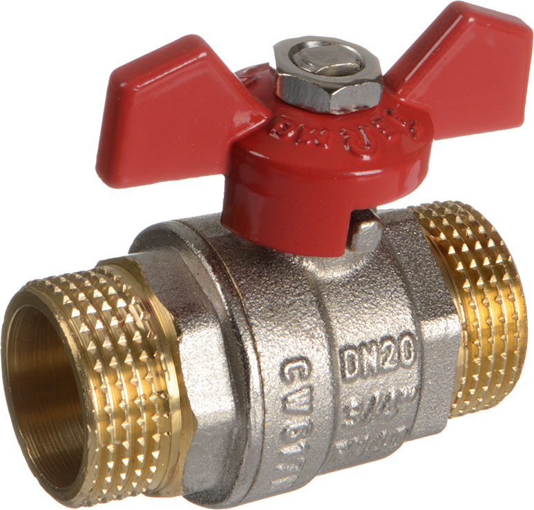 Шаровый кран Terma-RED 3/4"" с полным проходом изготовлен из латуни и применяется в трубопроводах с максимальным рабочим давлением 40 бар, резьба наружная/наружная, ручка бант из цинкового сплава. Используется в системах водопроводов для питьевой и технической воды. Температура рабочей среды от 0 С до +150 С.