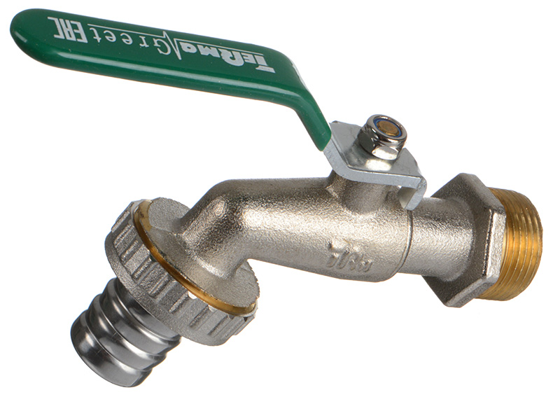 Кран шаровый водоразборный используется в водопроводных системах холодного, в том числе питьевого, водоснабжения, а также в системах горячего водоснабжения с температурой воды до +80 градусов. Рабочее давление - 8 бар. Кран может применяться на технологических трубопроводах, транспортирующих жидкости неагрессивные к материалам крана. На кране в районе излива крепится штуцер, с помощью которого происходит соединение со шлангом. В корпусе крана на выходе потока среды встроен пластиковый рассекатель, концентрирующий струю. Резьба на 3/4"", диаметр штуцера - 20 мм.