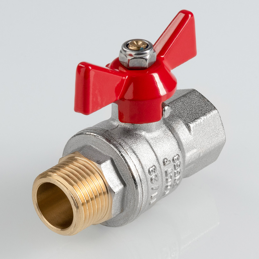 Полнопроходной шаровой кран VT.418.N серии «VALTEC ГОСТ» имеет внутреннюю и наружную резьбу, оснащен силуминовой ручкой-бабочкой с эпоксидной эмалевой окраской.