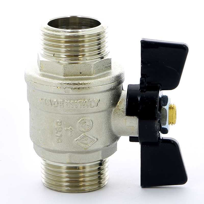 Кран шаровый HH Bugatti Oregon бабочка 1" усиленный применяется в качестве запорной арматуры в системах горячего и холодного водоснабжения, включая системы с питьевой водой, отопления, транспортировки сжатого воздуха и углеводородов, нефтепродуктов, на технологических трубопроводах, транспортирующих жидкости и газы, не агрессивных к материалам крана. Относится к запорной арматуре и не предназначен для регулирования потока. Шаровые краны Oregon выполнены из горячепрессованной никелированной латуни CW617N. Шар выполняется из кованной полированной хромированной латуни, уплотнение шара – Virgin PTFE, шток – латунь, уплотнения штока – PTFE и PFM. Для присоединения к трубопроводу применяется наружная резьба HH.