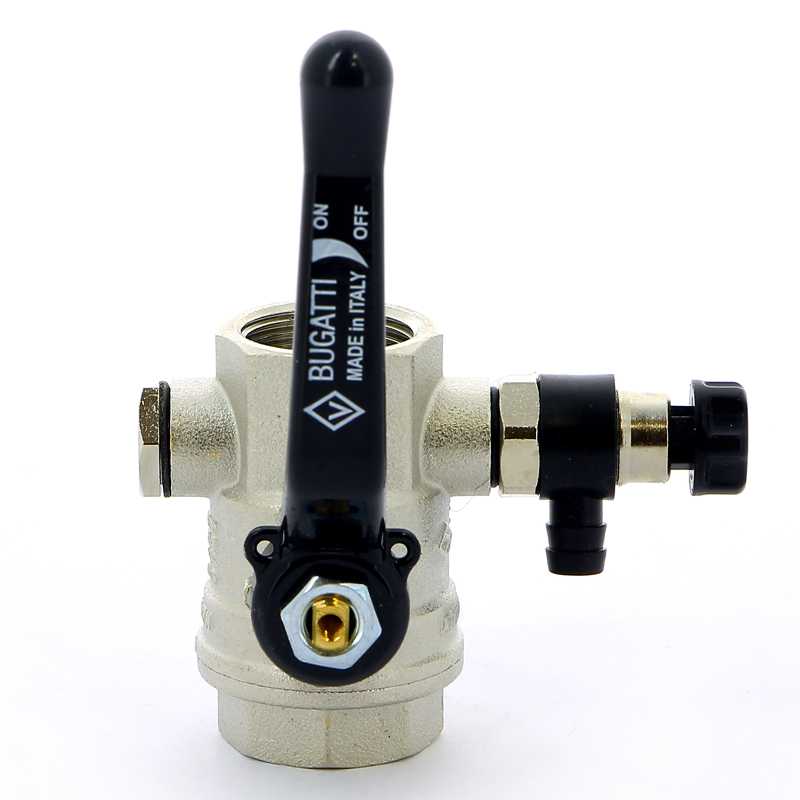 Кран Bugatti 3/4" шаровый с воздухоотводчиком Oregon 330 (черная ручка) (03300024)
