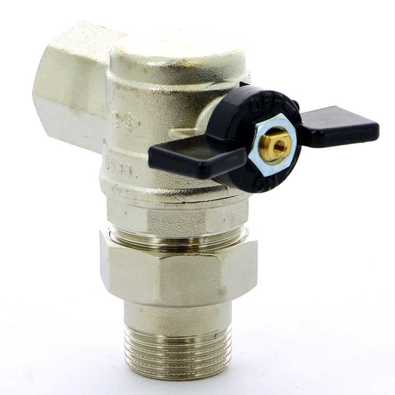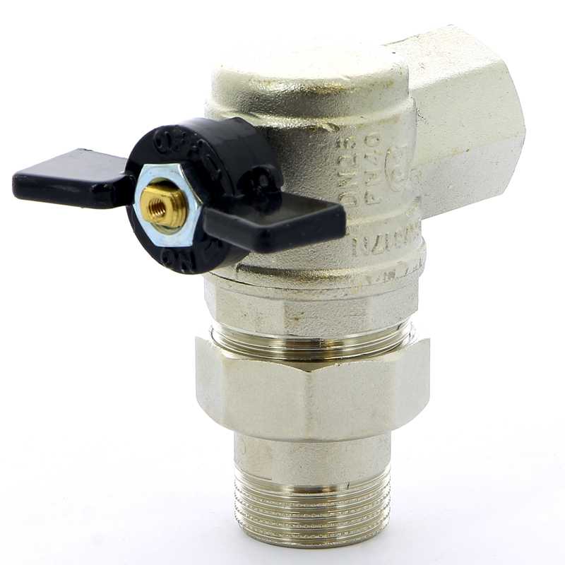 Кран Bugatti угловой 1" шаровый со сгоном Oregon 594 (черная бабочка) (05940009)