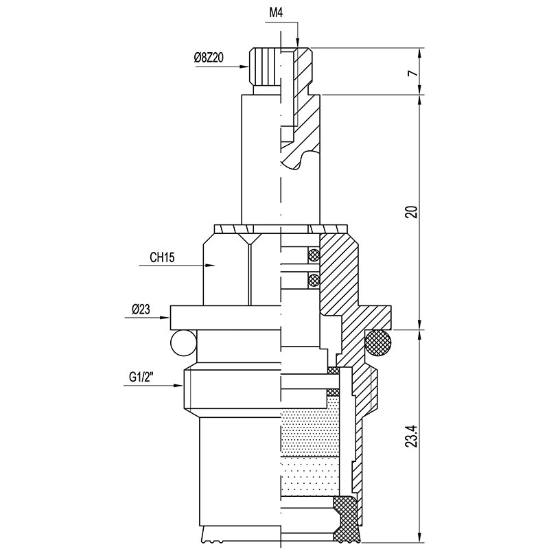 Кран букса металлокерамика 1/2"" 8*20 (поворот 180 градусов) MKP06623WC (мод. 017) применяется для регулировки режима подачи и закрытия воды для смесителей с двумя маховиками (холодная и горячая вода).