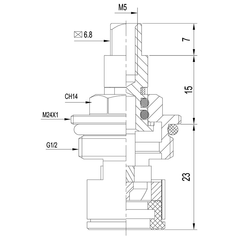 Кран букса металлокерамика 1/2"" квадрат 7мм под крест (поворот 90 градусов) MKP06624WC (мод. 086) применяется для регулировки подачи и закрытия воды для смесителей с двумя маховиками (холодная и горячая вода).