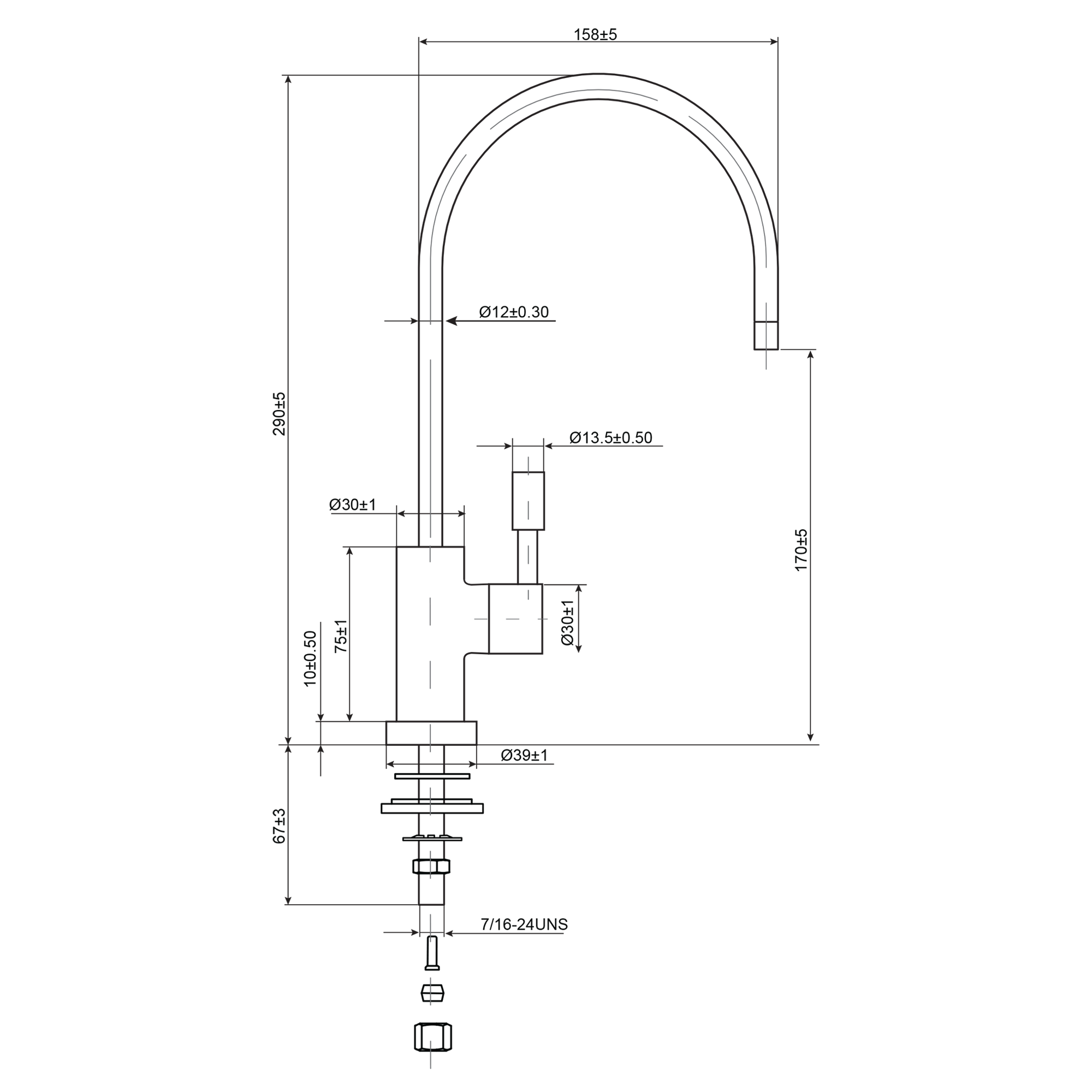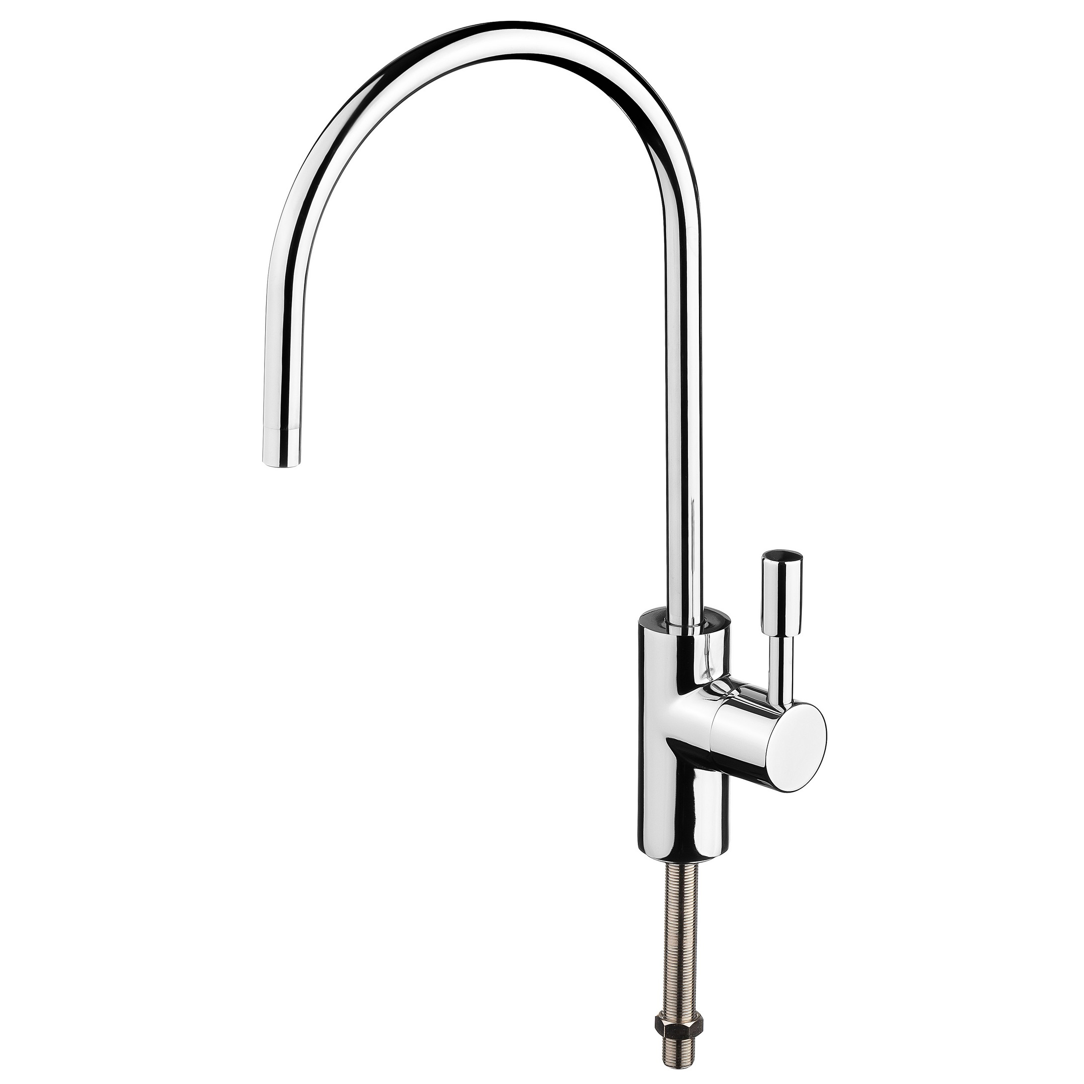 Кран имеет большой диаметр излива, что позволяет его использовать в мойках большого объема. Кран изготовлен из современных экологически безопасных материалов с нанесением особо прочного хромированного покрытия и рассчитан на работу с холодной водой. Кран устанавливается на мойку или столешницу в любом удобном для эксплуатации месте.
