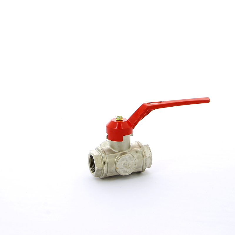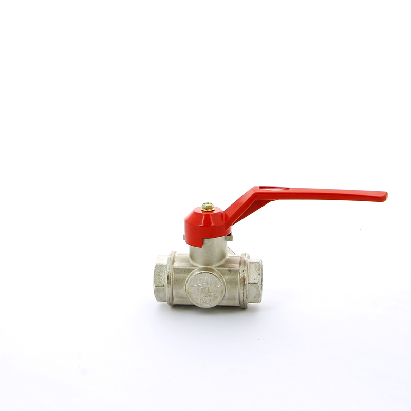 Кран Itap 1" шаровый трёхходовой T-порт (красная ручка-рычаг) (1280100T)
