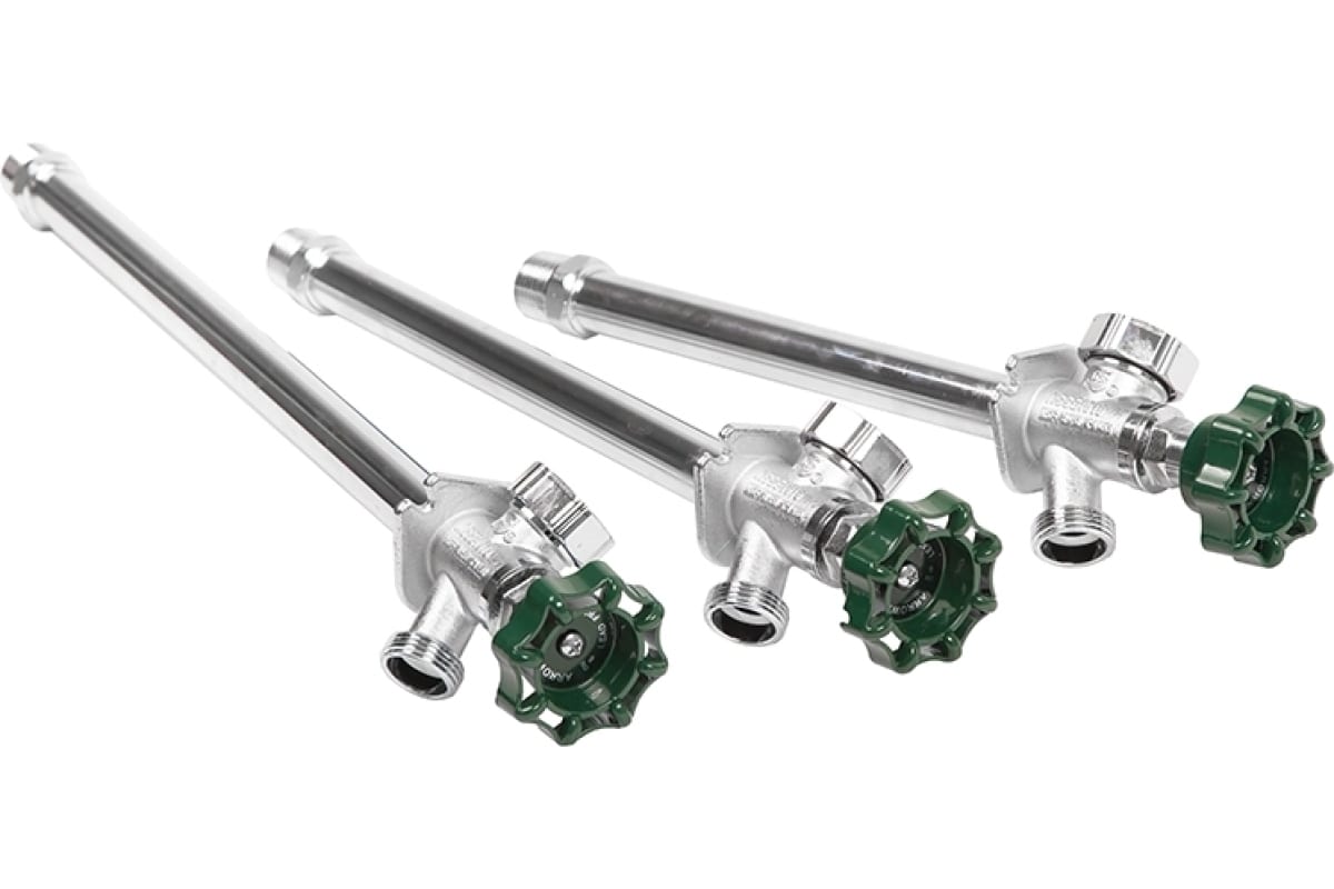 Кран комплектуется монтажной полимерной пластиной, которая позволит смонтировать кран под небольшим уклоном на улицу, чтобы при закрытии из трубки стекала вода. Корпус крана с запорной рукояткой располагается снаружи. На изливе крана нарезана резьба для подключения садового шланга.