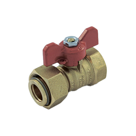 Кран шаровый с накидной гайкой Tiemme 1/2"*3/4" ВВ (2260020) / Шаровые краны для счетчиков, концы - внутренняя резьба ISO228, со свободной гайкой и ручкой-бабочкой красного цвета (Art. 2263)