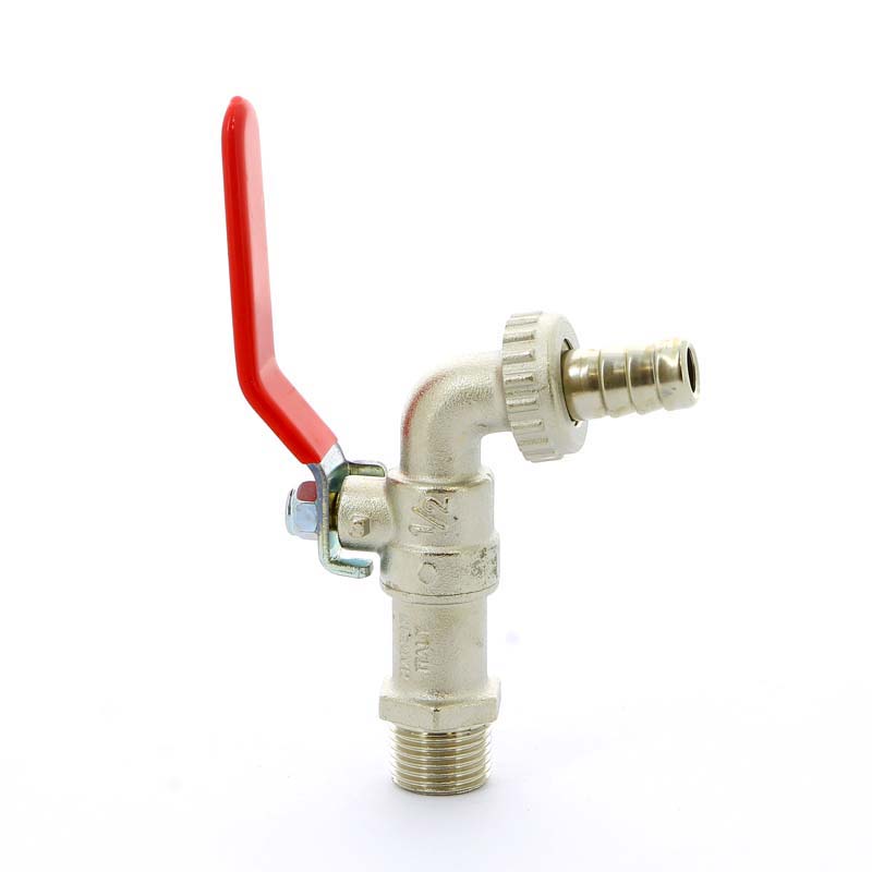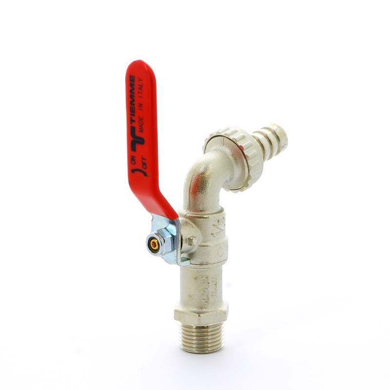 Кран шаровый сливной со штуцером Tiemme Eolo 1/2" (красная плоская стальная ручка) (2500006) / Шаровой кран со штуцером и плоской ручкой-рычагом красного цвета (Art. 2530)